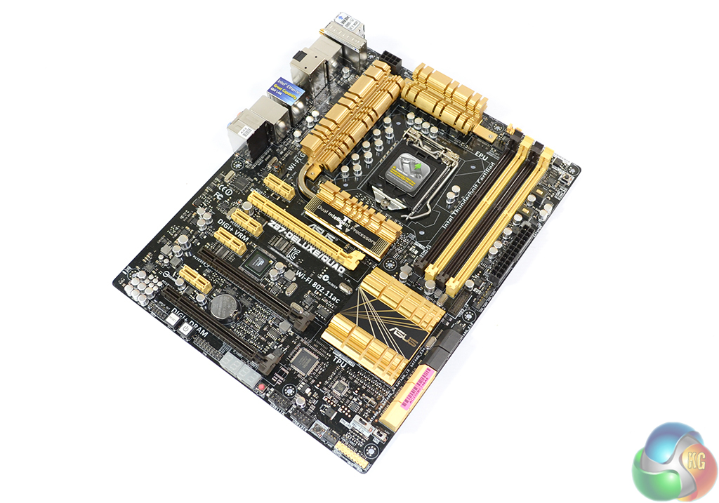 Measuring 12″ x 9.6″, Asus's Z87-Deluxe/Quad conforms to the standard ATX form factor. Asus's Thunderbolt 2-equipped board retains the black and gold colour scheme of its original Z87-Deluxe sibling.