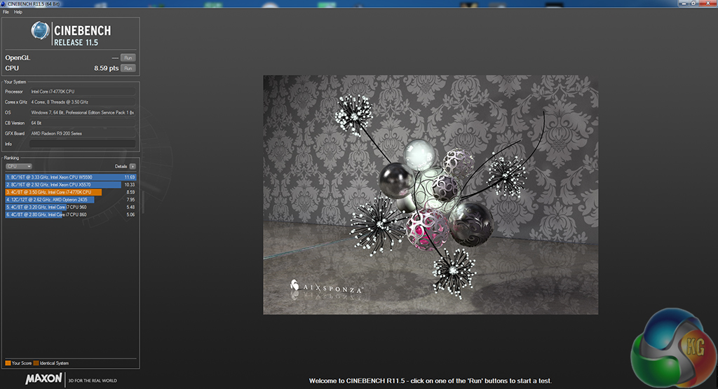 We used the ‘CPU’ test built into Cinebench R11.5 64-bit.