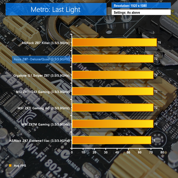 We used a 1920 x 1080 resolution and the Metro: Last Light‘s built-in benchmark set to ‘High’ quality to offer an intense challenge for the gaming hardware while also making playable frame rates a possibility.