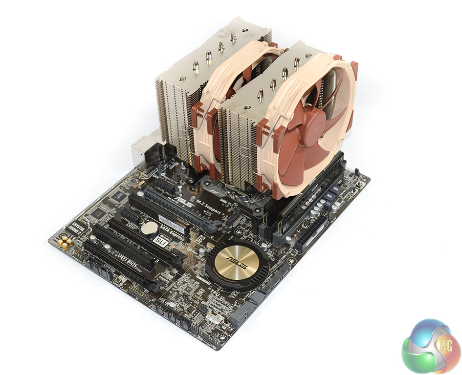 With a CPU cooler mounted to the board and memory installed, Asus' Z97-A provides an appearance that is far better than many budget motherboards of the past. Noctua's beefy NH-D15 fits on the Z97-A without issues, just in case anybody is thinking of saving money on a motherboard to go all-out on cooling.