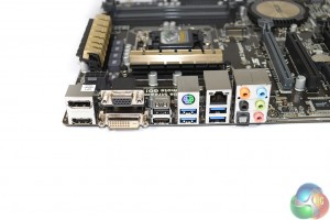 The rear IO consists of an array of ports typical for a low-cost motherboard using a mainstream chipset. Asus provides users with four different forms of display connectivity, allowing them to make full use of an LGA 1150 processor's onboard graphics. Ethernet is provided by Intel's I218V chipset.