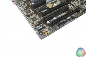 Storage connectivity comes in the form of six SATA 6Gbps ports set in a right-angled orientation. As has been seen across many of the previewed ‘future Intel chipset' motherboards, two SATA 6Gbps lanes and an extra data-carrying port are used to form the 10Gbps SATA-Express connection.