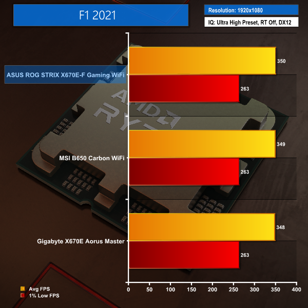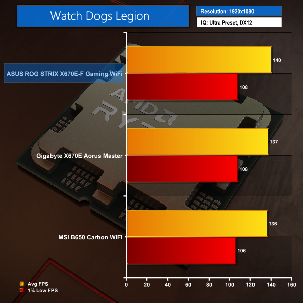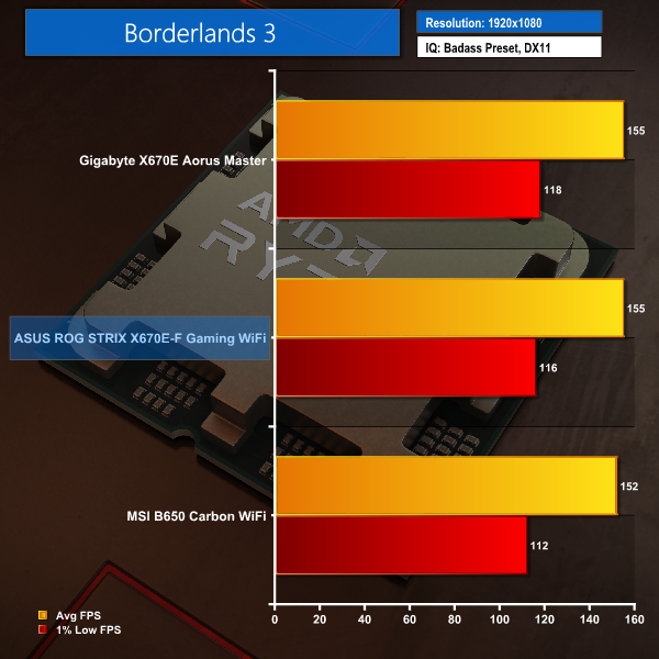 In terms of actual gaming, the ASUS ROG STRIX X670E-F Gaming WiFi does just as well as we would expect from any other AM5 motherboard.