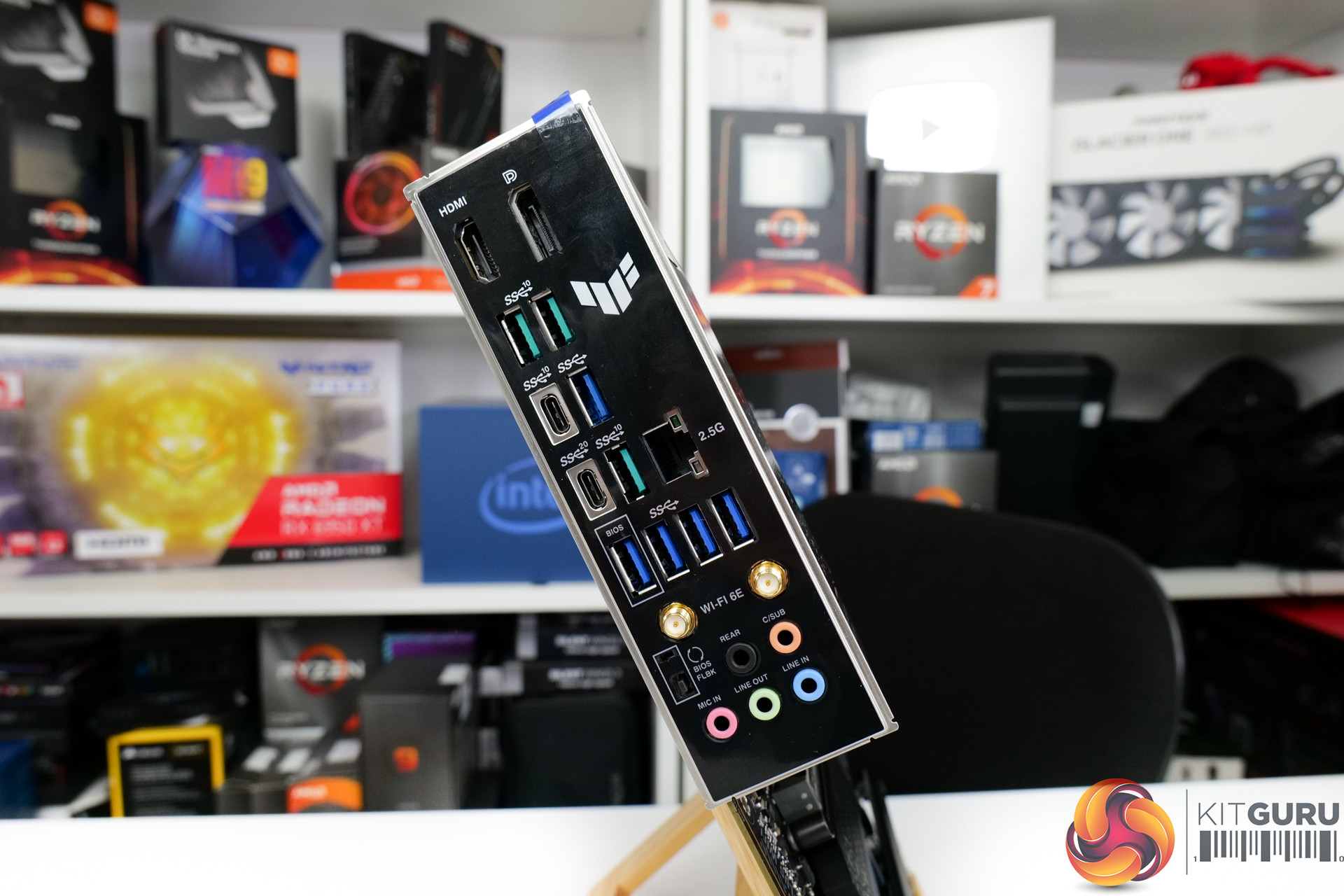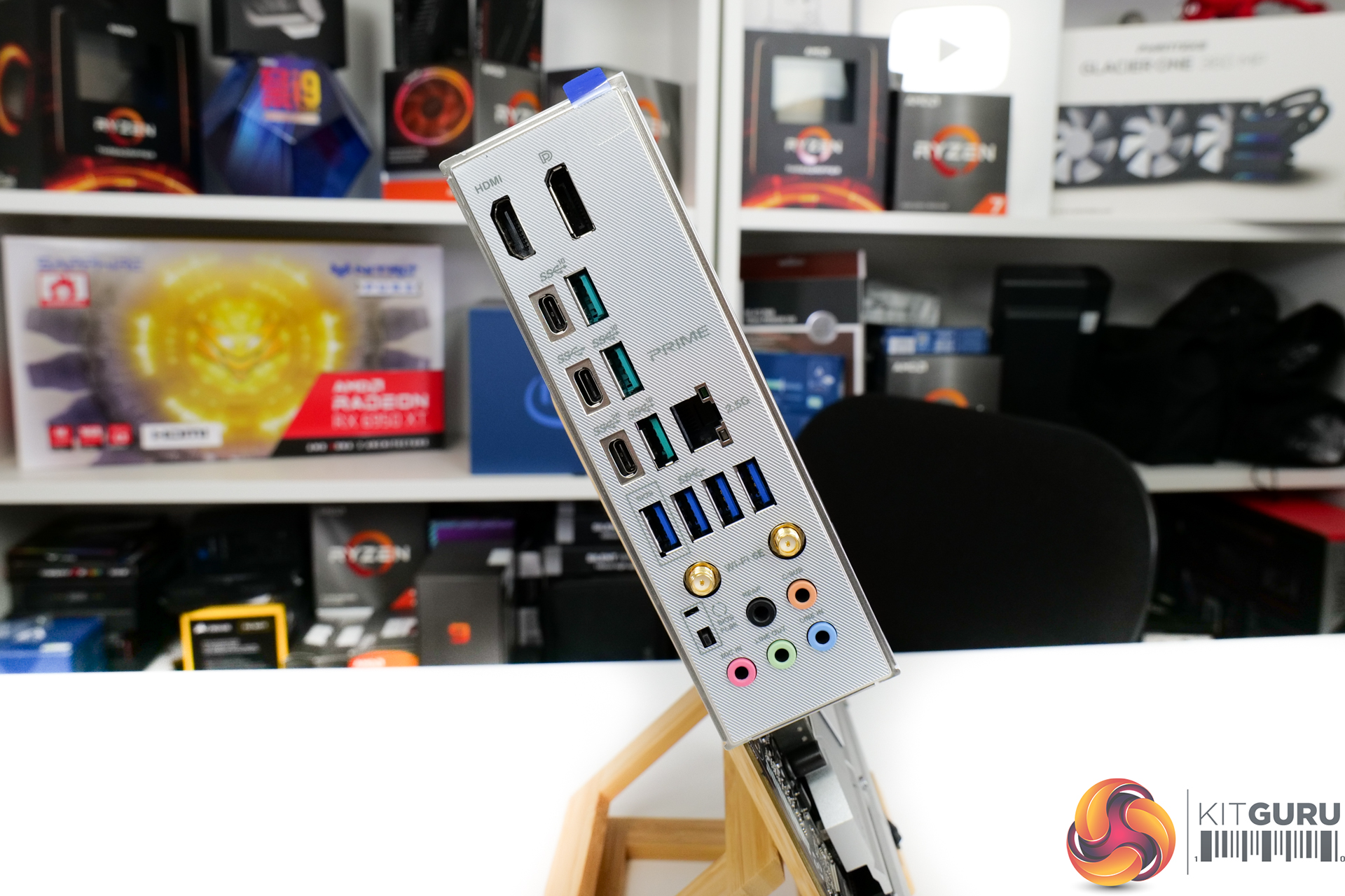 Both motherboards get ten total USB ports on the rear IO. These are one 20Gbps, four 10Gbps, and five 5Gbps. The TUF deploys all of its 5Gbps ports as Type-A whereas the Prime swaps one of them for Type-C.