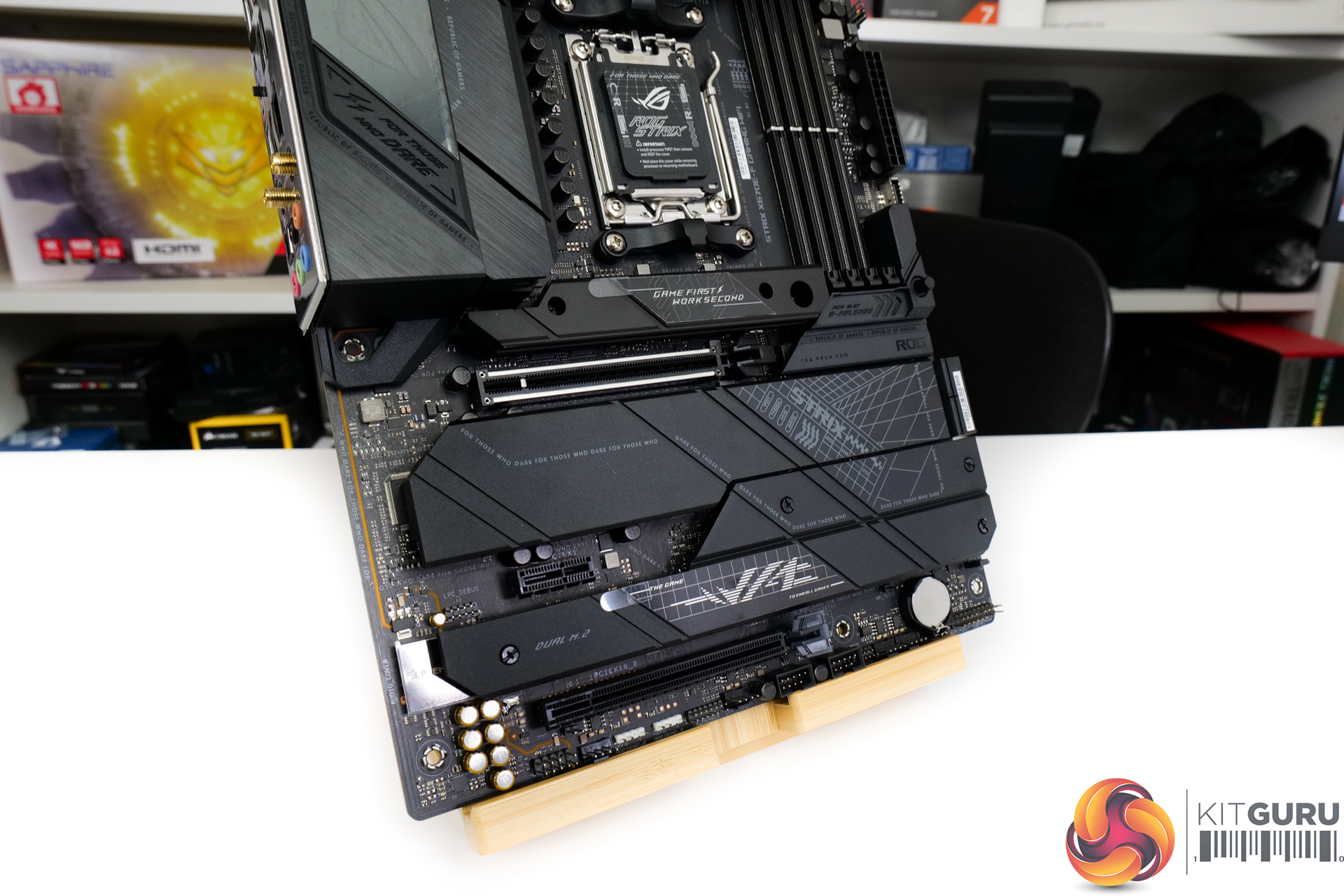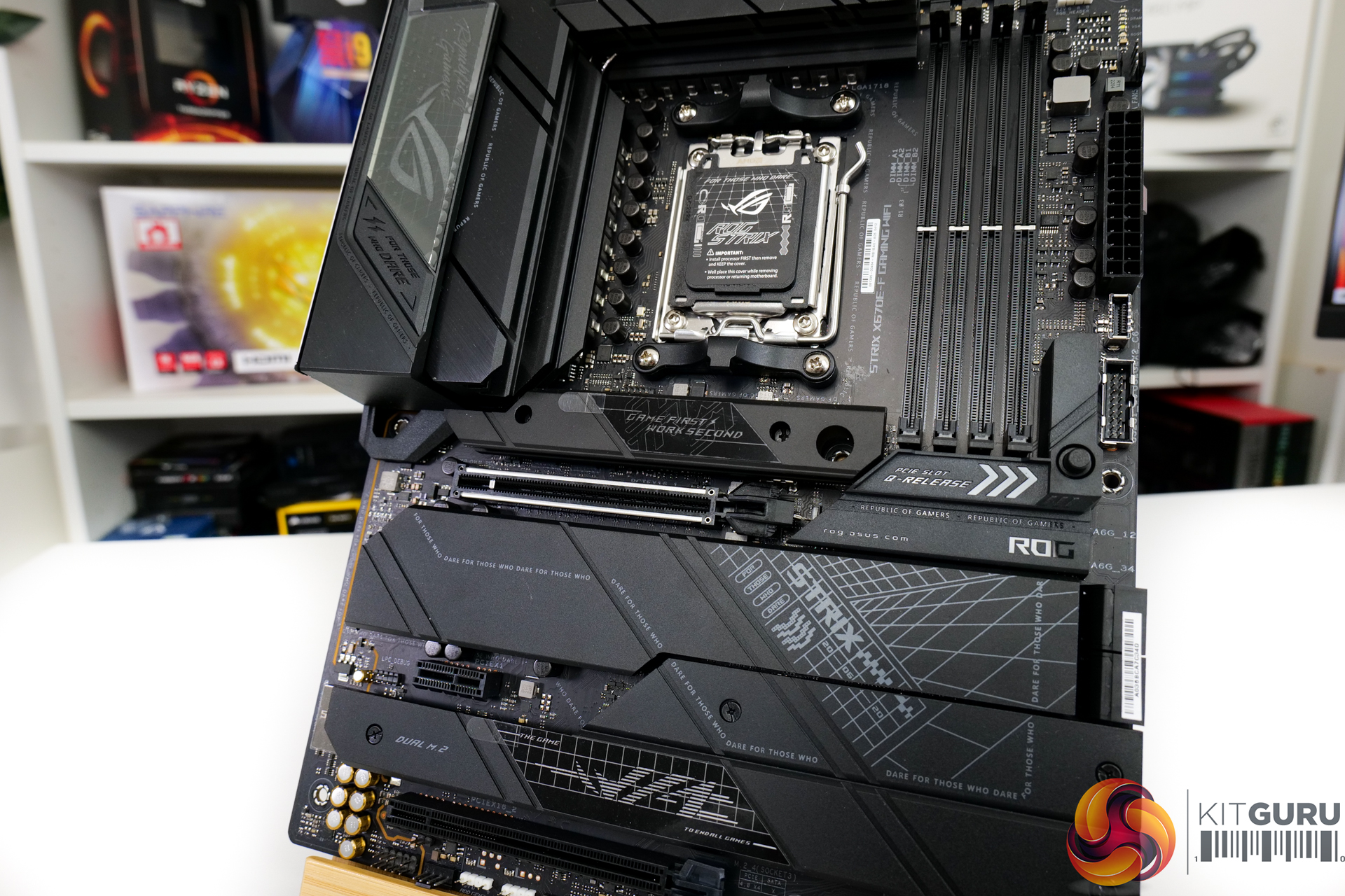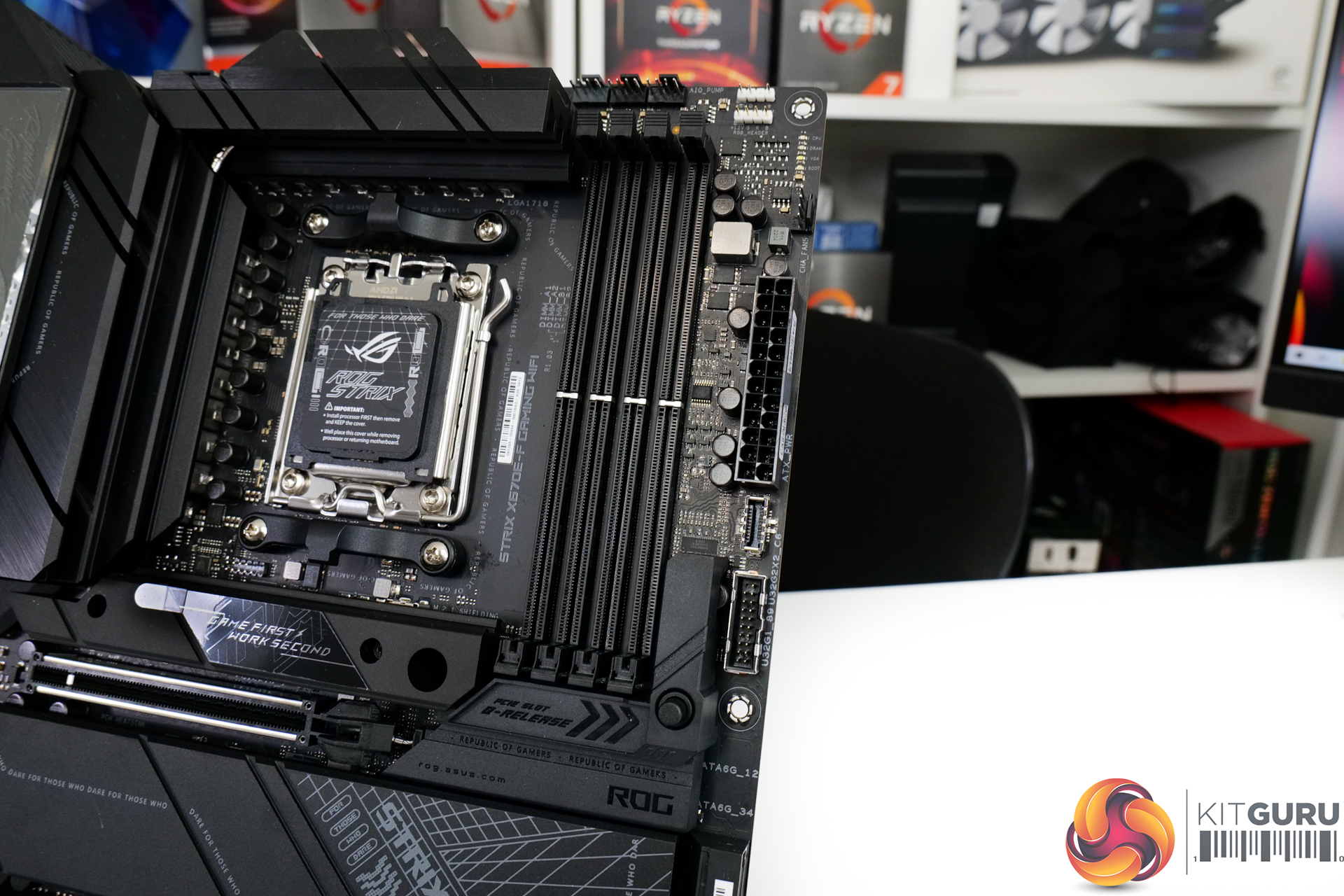 Now we move onto an ROG STRIX motherboard that is priced and positioned a little higher in ASUS’ ladder than the two boards we just looked at. This is the potentially confusingly named ROG STRIX X670E-F Gaming WiFi that typically sells around the £420-or-so level.