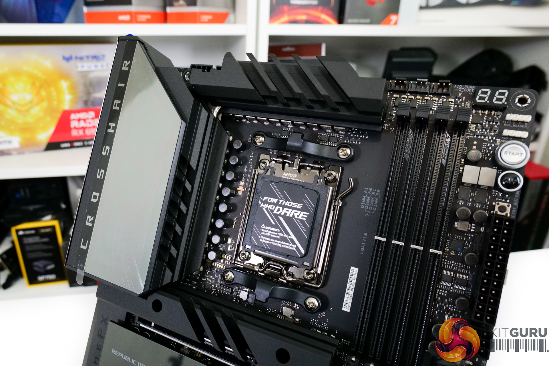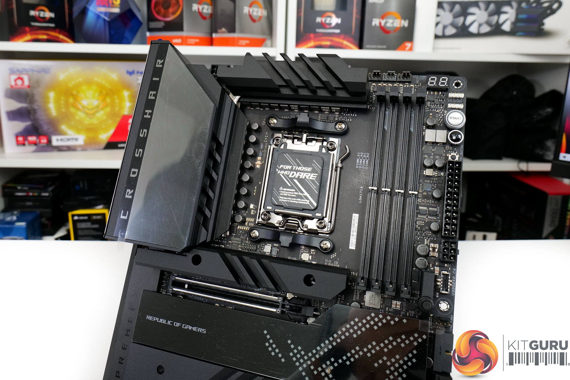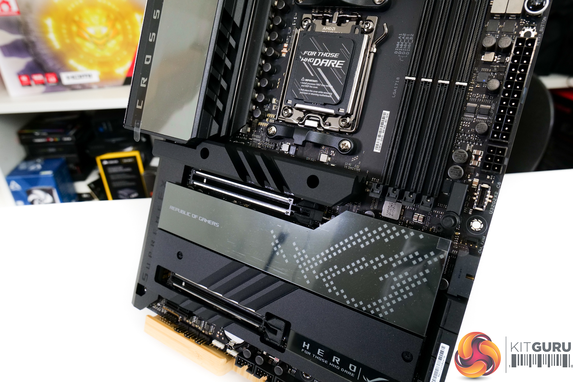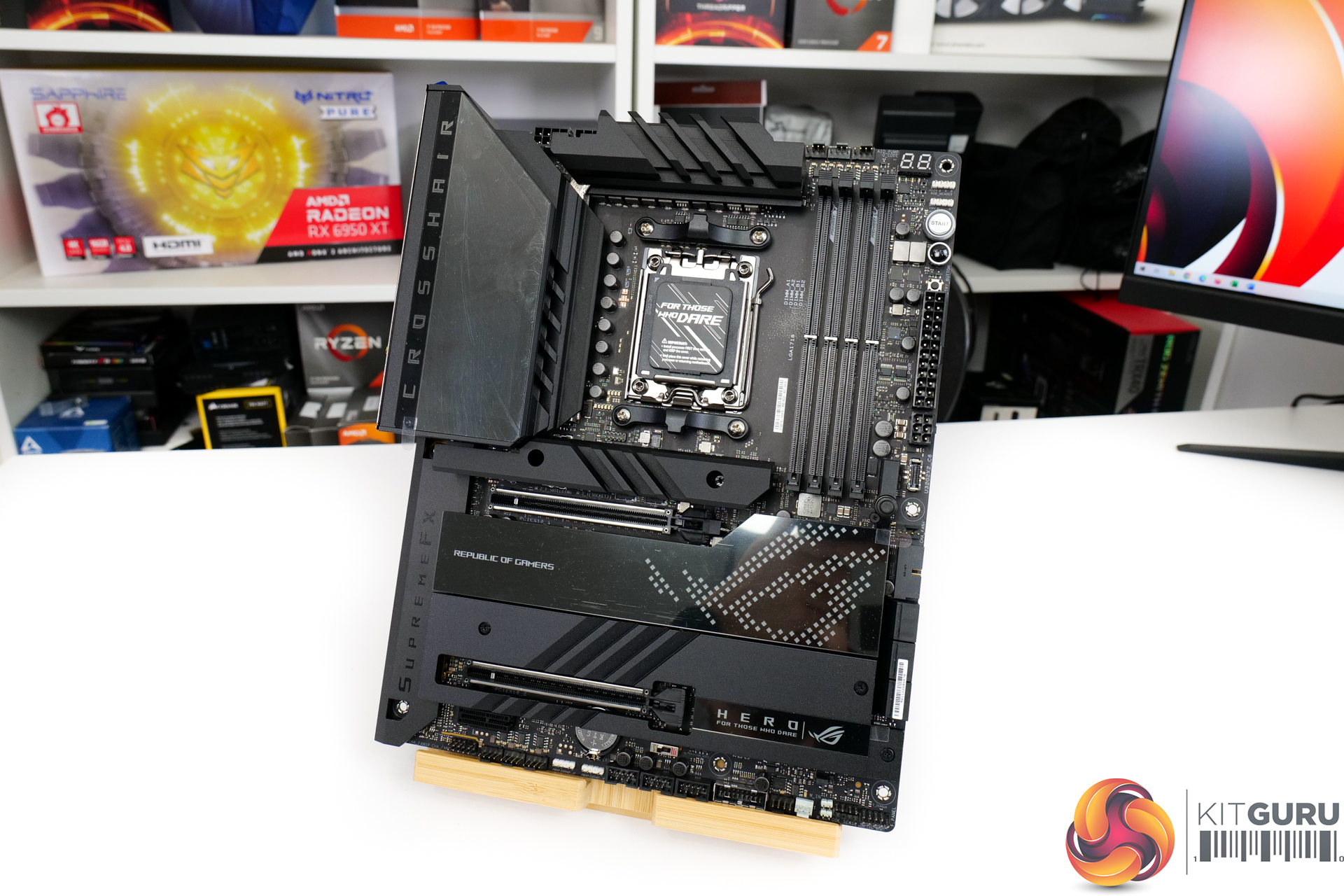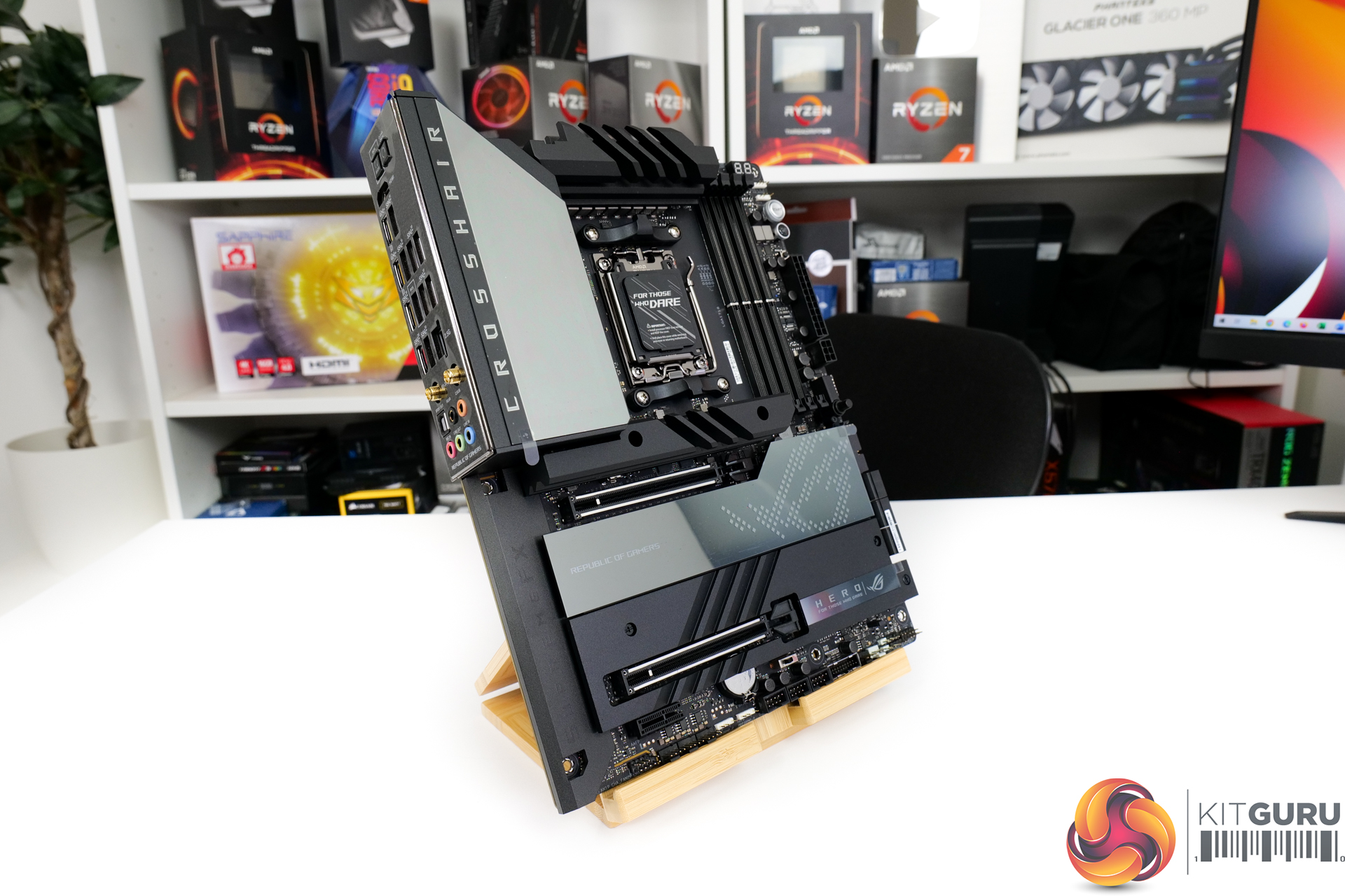 Next up is ASUS’ ROG Crosshair X670E Hero. This motherboard retails for over £640 currently, so let’s take a look at the premium features that ASUS uses to differentiate this option versus the cheaper alternatives.