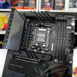 ASUS deploys an 18+2 teamed power delivery solution using 110A stages. That is a truly incredible level of maximum theoretical power output and should ensure tolerable operating temperatures. There are also 10K-rated black metallic capacitors, and the Digi+ ASP2205 PWM controller is mounted on the board’s rear side.