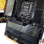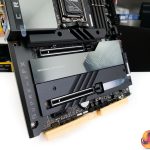 PCIe connectivity is improved to a pair of full-length, steel-reinforced slots. These run at x16/x0 or x8/x8 using CPU-fed Gen 5 lanes. Only the top slot gets the Q-release latch though. There is a bottom PCIe 4.0 x1 slot, too.