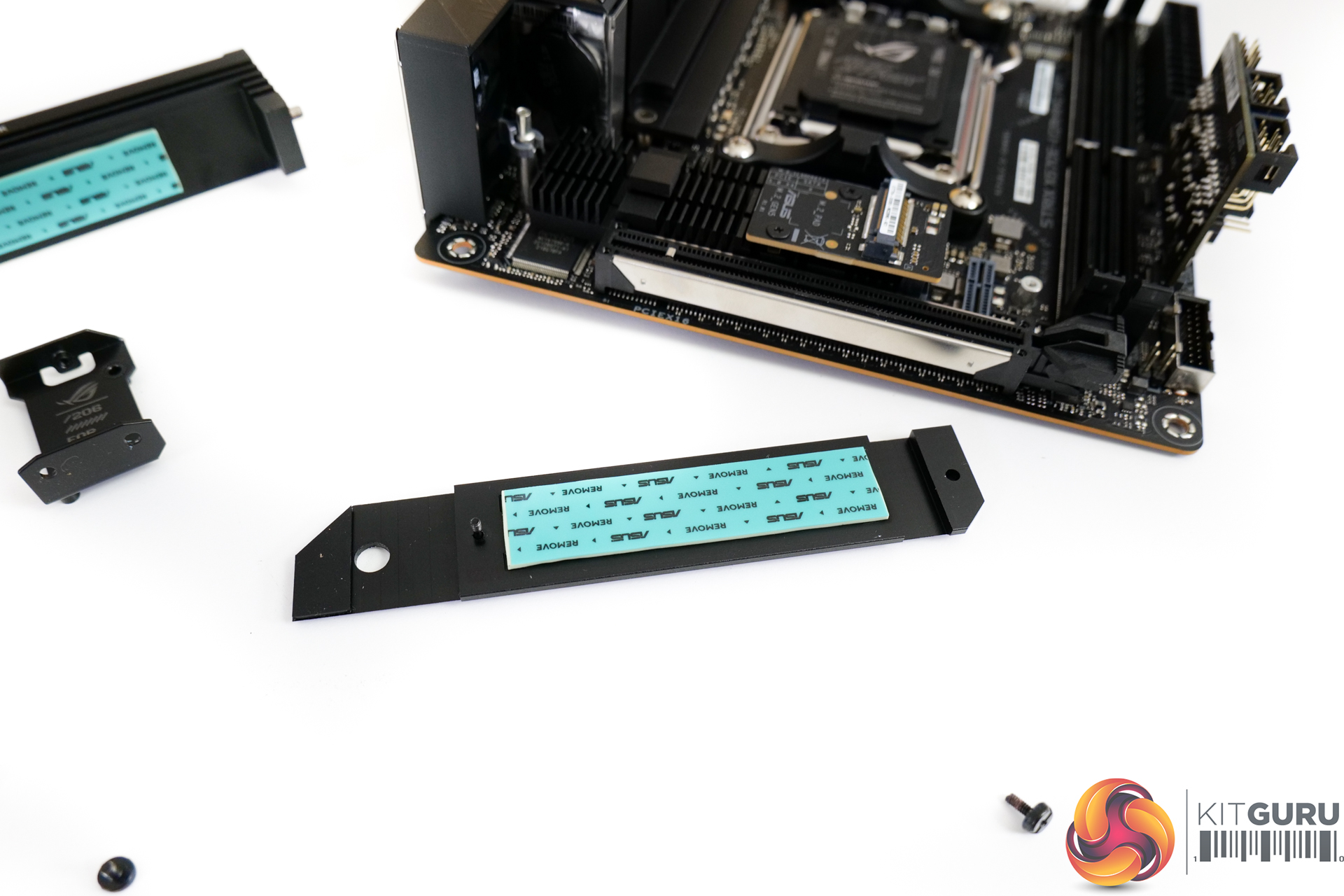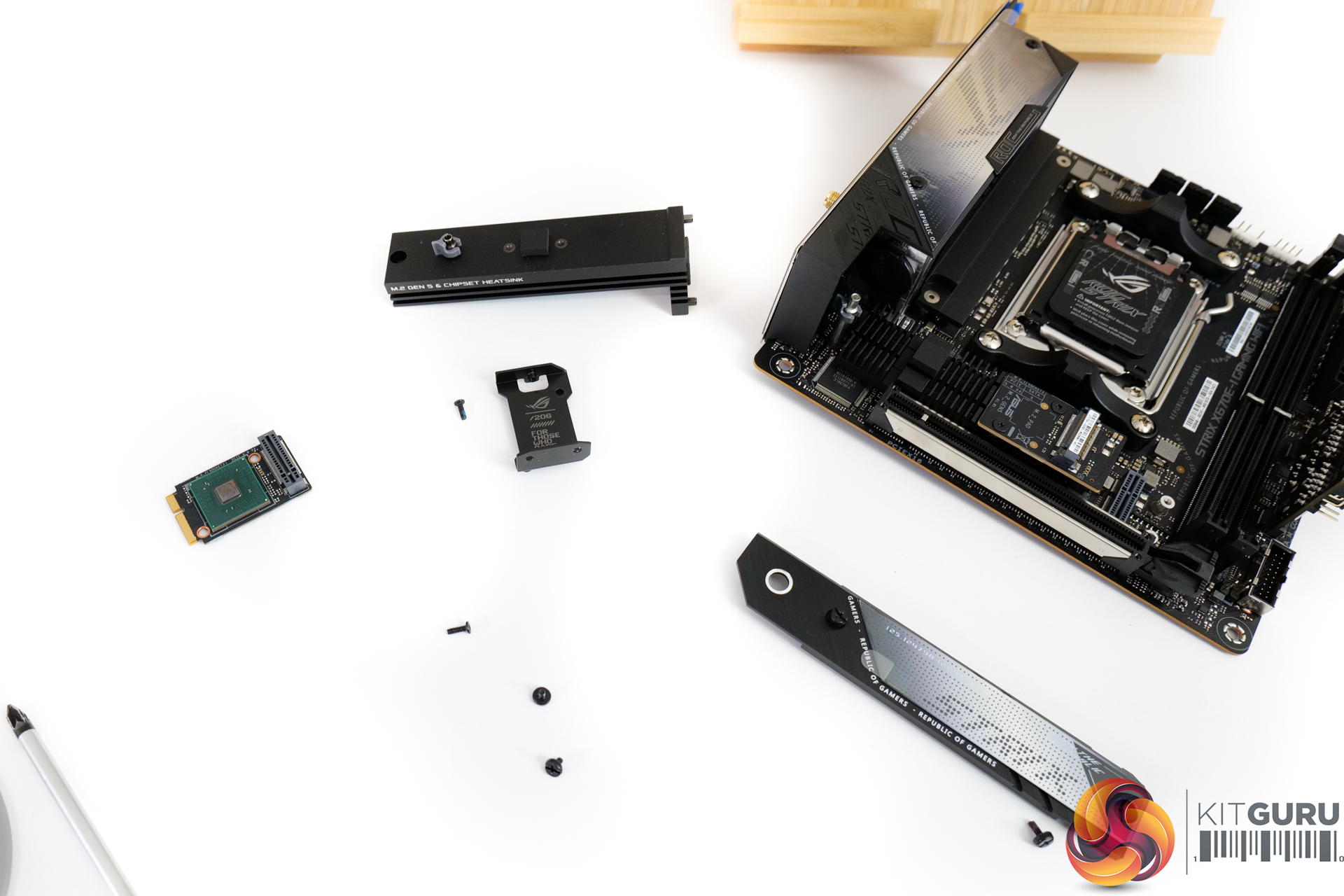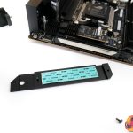 ASUS actually provides installation capacity for two M.2 SSDs, one of which will run at PCIe 5.0 x4 from the CPU’s lanes. A small fan shifts air from the rear IO area to help cool these two stacked SSDs.