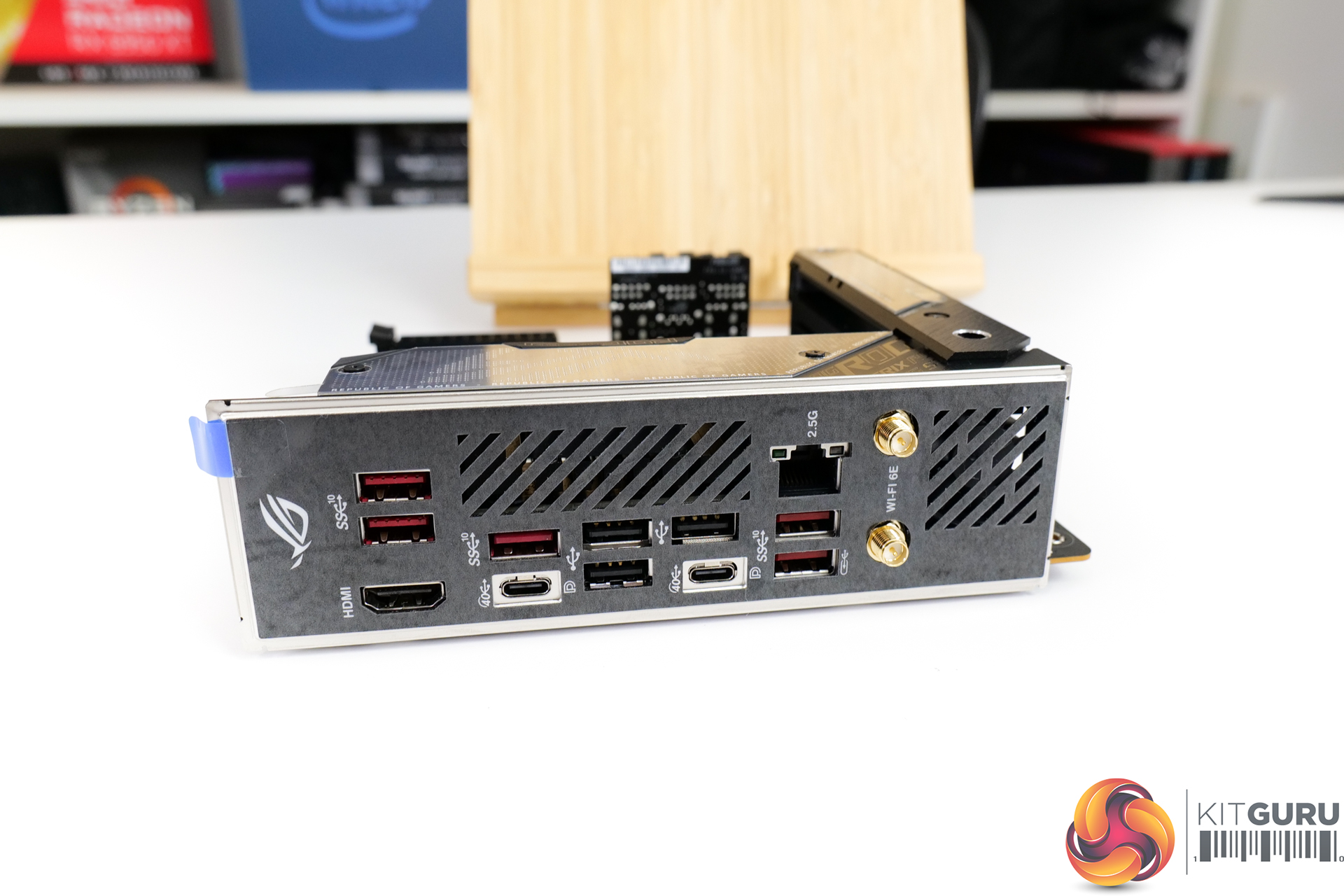 Rear IO Clear CMOS and BIOS Flashback buttons are two glaring, questionable omissions… on the face of it. As you will note, there is no audio connectivity on the rear IO, either. This is because ASUS hands over those duties to the ROG STRIX HIVE unit.
