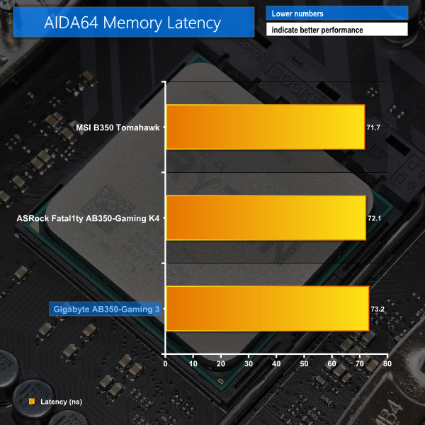 Memory-based performance is also fine with the Gigabyte board, even if its latency numbers are very slightly worse than those of its competitors.