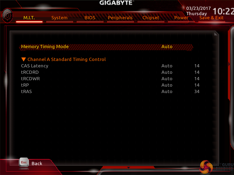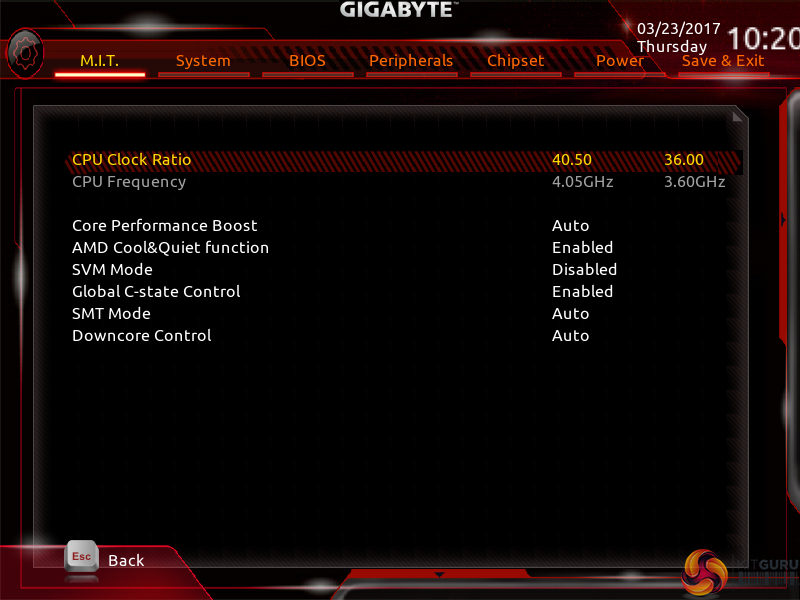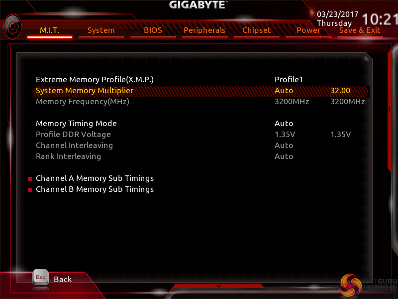 M.I.T. is the main section where parameters relating to voltages, frequencies, and power settings for the system’s main components are found. The Memory and Voltage sections are split from the Frequency subsection, which makes sense until one realises that an entire group of memory settings is replicated in both the Frequency and Memory subsections.