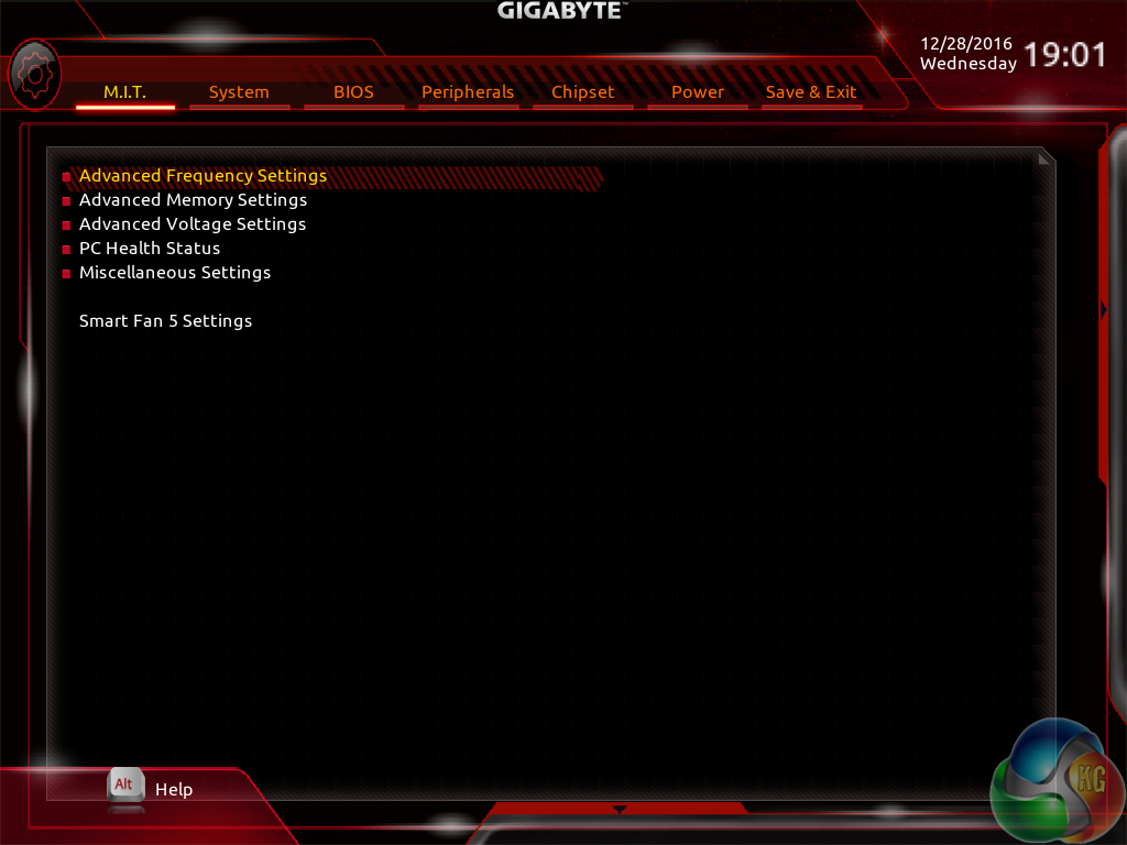 MIT is the main section where parameters relating to voltages, frequencies, and power settings for the system's main components are found. The Memory and Voltage sections are split from the Frequency subsection, which makes sense until one realises that an entire group of memory settings is replicated in both the Frequency and Memory subsections.