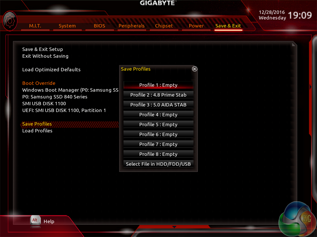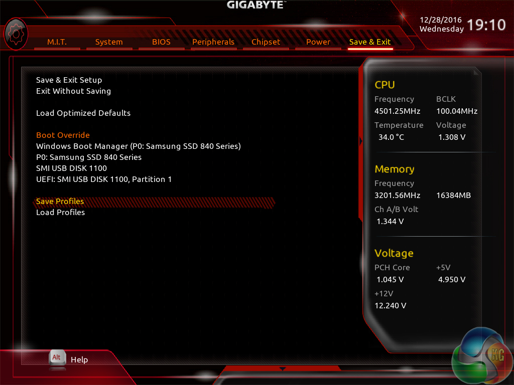 The profile manager is accessed through the Save & Exit page. I can see the logic in this location but I would prefer that the profiles were available in a more obvious section, perhaps MIT as this is where the bulk of parameter adjustment is conducted or BIOS as that would be logical.