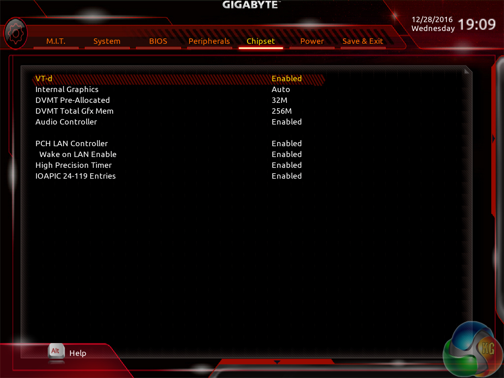 Settings relating to the internal graphics and virtualisation support, among others, can be tweaked in the Chipset page.