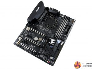 Up to 110mm-long drives can be housed in the top slot while the lower is limited to (the more common) 80mm-long variants. It is disappointing to see that Gigabyte has not given M.2 SSD cooling any consideration, as MSI has done with its M.2 Shield. With that said, positioning of the upper M.2 slot (not below a GPU) means that one could manually attach a VRM-style heatsink to an M.2 SSD without worrying about vertical interference. Incidental airflow from an air CPU cooler would also help.