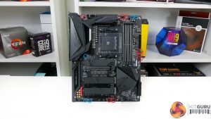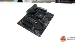 Primarily black and dark grey in styling, the Gigabyte B550 Aorus Master is an aesthetically pleasing motherboard and fits the usual AORUS theme.