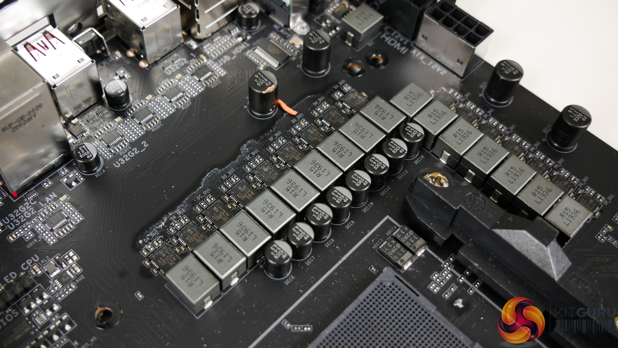 16 Infineon TDA21472 70A power stages form the heart of the power delivery solution. These units are amongst the best power stages on the market. You get up to 980A of theoretical maximum current capacity for the CPU power delivery alone. Plus another 140A theoretical for the SoC VRM.
