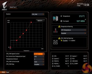 You get good sensor input data for control in the Gigabyte UEFI Smart Fan 5 section. Excellent speed curve control ability is available, as is common for recent Gigabyte motherboards.