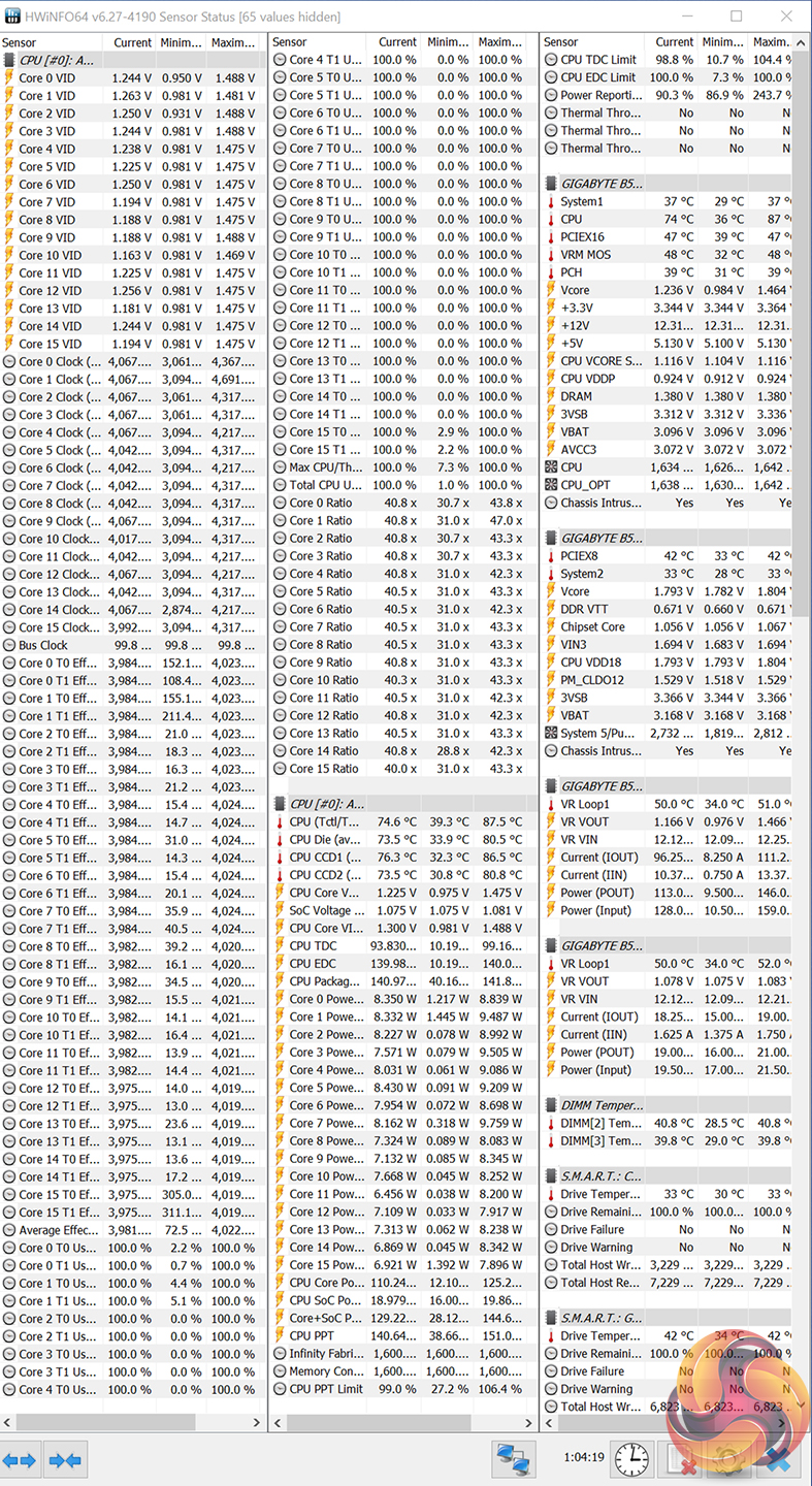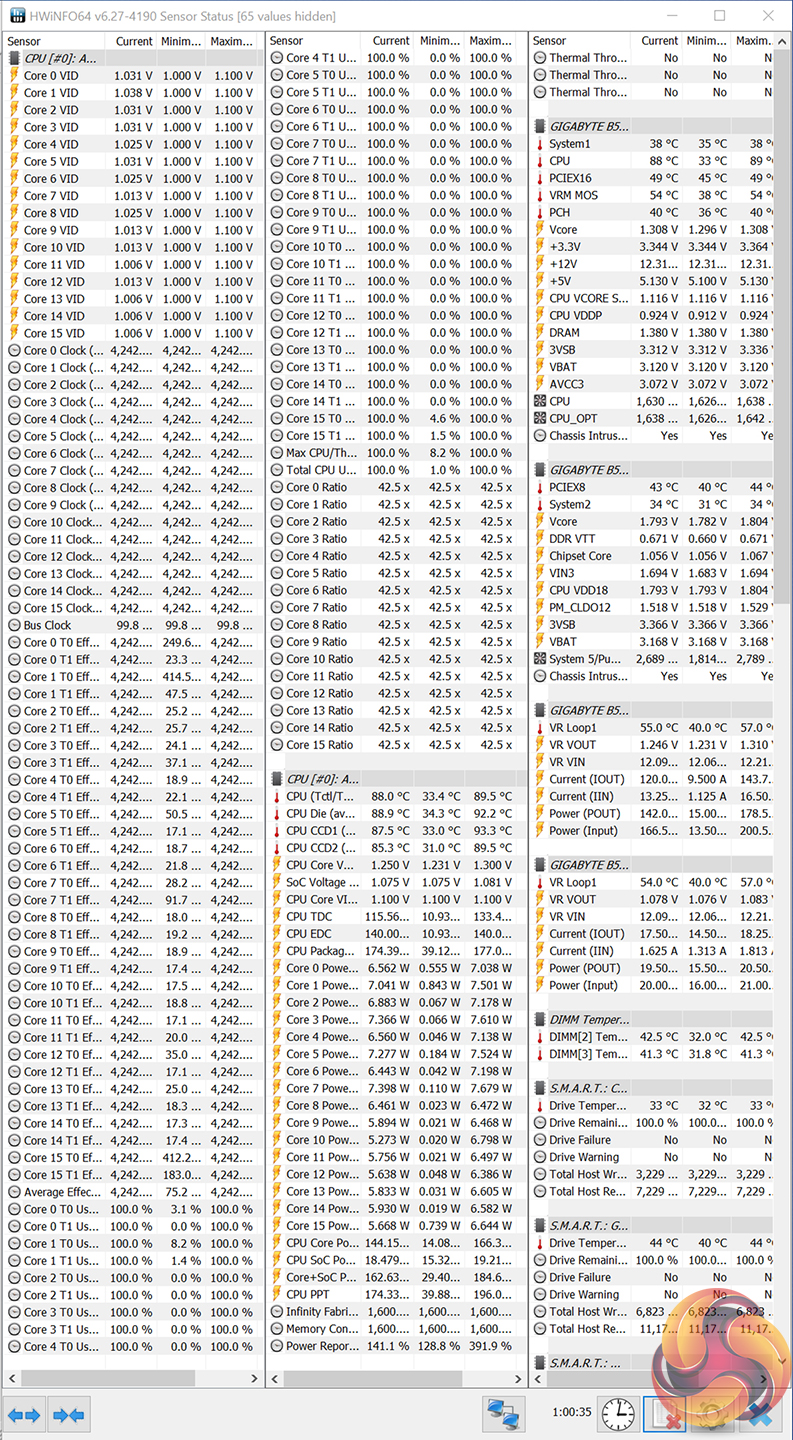 Gigabyte feeds through a decent amount of sensor data to tools such as HWiNFO64. The VRM MOS temperature reading is the one that we pay particular attention to and we found this data to be of a good degree of accuracy when compared with manual readings.