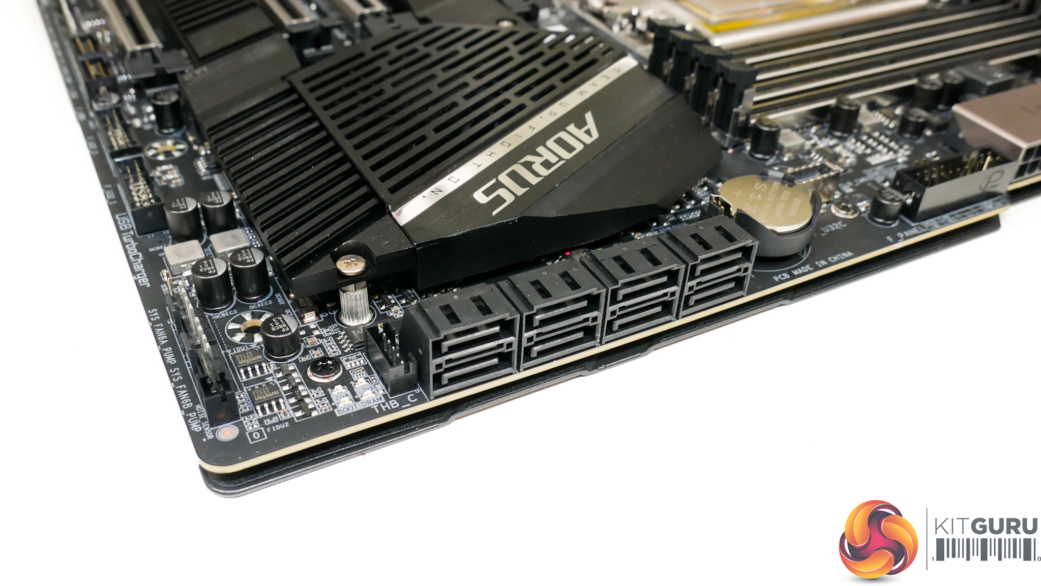 Gigabyte is clearly under no illusions of the cooling required with Threadripper builds. As such, we find five 4-pin fan headers mounted along the motherboard’s bottom edge. This is a superb move by Gigabyte as it gives plenty of connection option in a location that is simple to cable manage and easy to reach for most chassis fans.