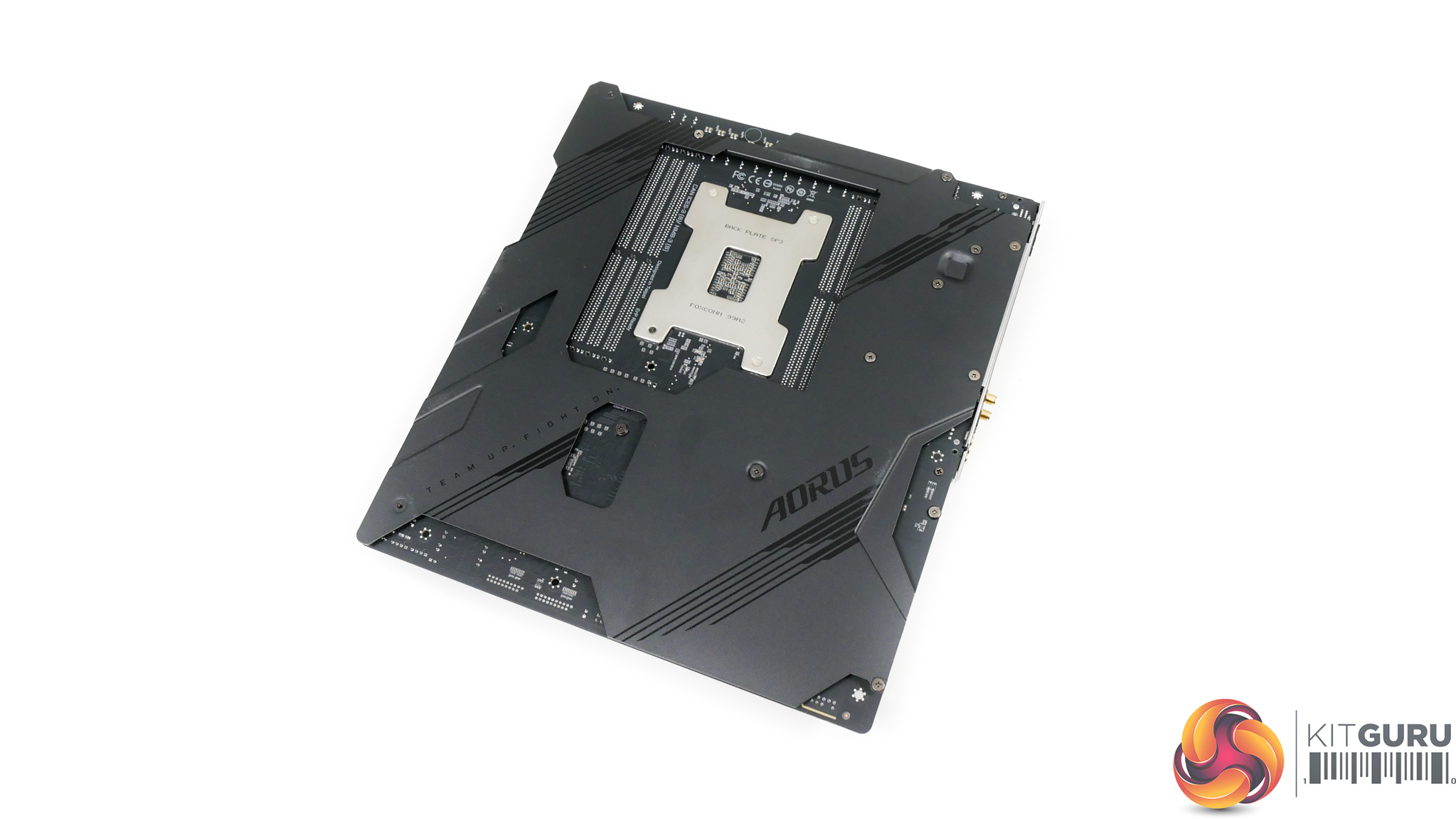 A ‘NanoCarbon Coating’ is applied to the rear of the backplate using an electrostatic adhesion technique, which sound fancy but is very common in industry. According to Gigabyte, the coating on the aluminium backplate helps to reduce backside PWM component temperatures by 10%. Realistically, a standard black aluminium backplate would have been adequately efficient in its heat transfer duties but credit to Gigabyte for trying out a relatively new process for enhancing thermal properties.