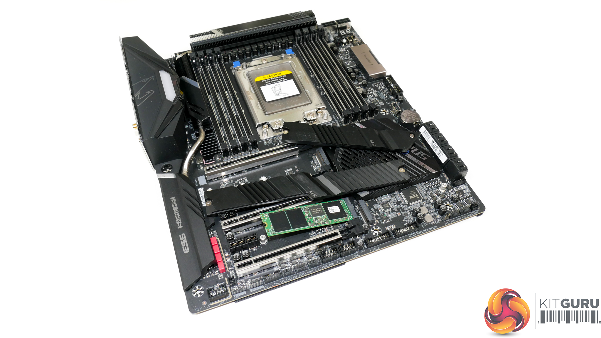 Three M.2 slots are spread across two primary installation zones on the TRX40 Master. Installation is simple and quick – you do not need to remove large motherboard shrouds or heatsinks integrated with the chipset cooler.