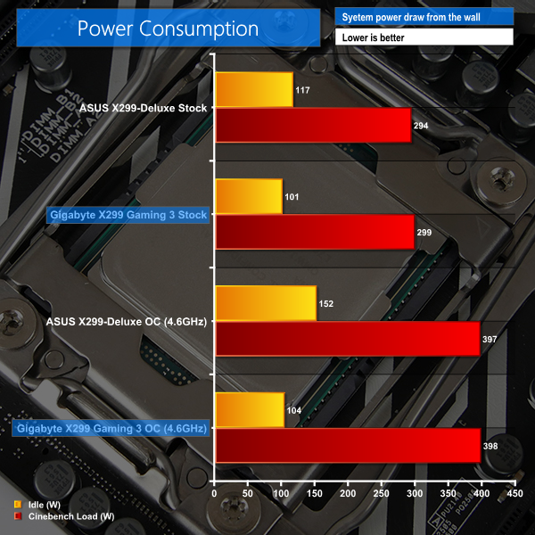 As a performance comparison, we have included the results from the ASUS X299-Deluxe. The maximum overclocked configuration achieved with each board was a 4600MHz (46 x 100MHz) processor frequency whilst using 3200MHz CL14 memory.