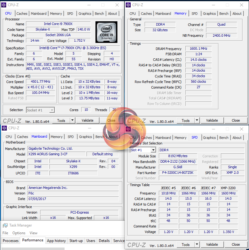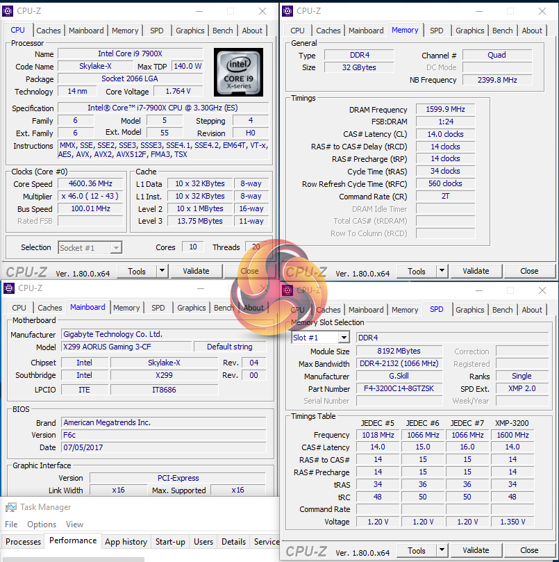 As a performance comparison, we have included the results from the ASUS X299-Deluxe. The maximum overclocked configuration achieved with each board was a 4600MHz (46 x 100MHz) processor frequency whilst using 3200MHz CL14 memory.