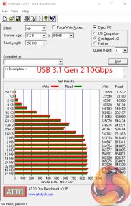 The ATTO disk benchmark is a Windows-based utility for testing storage performance of any storage drive or controller. We use the default benchmark setup.