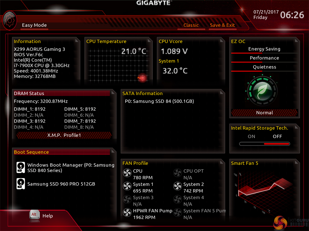 I don’t have any complaints about Gigabyte’s Easy Mode implementation. It is as good as the versions used by competing vendors.
