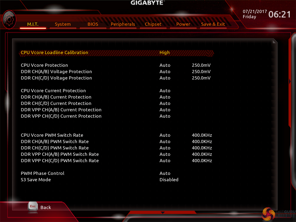 The selection of LLC settings don’t make any sense because there’s no explanation (be it visual or written) as to how the voltage profile is adjusted with each mode. As it happens, our trial-and-error testing suggests that you should use the High LLC setting if you want CPU VCore to stay close to your applied numerical value without a significant overshoot or undershoot. Is this so hard for Gigabyte to write in the UEFI?