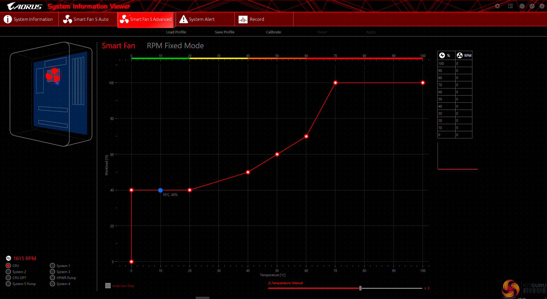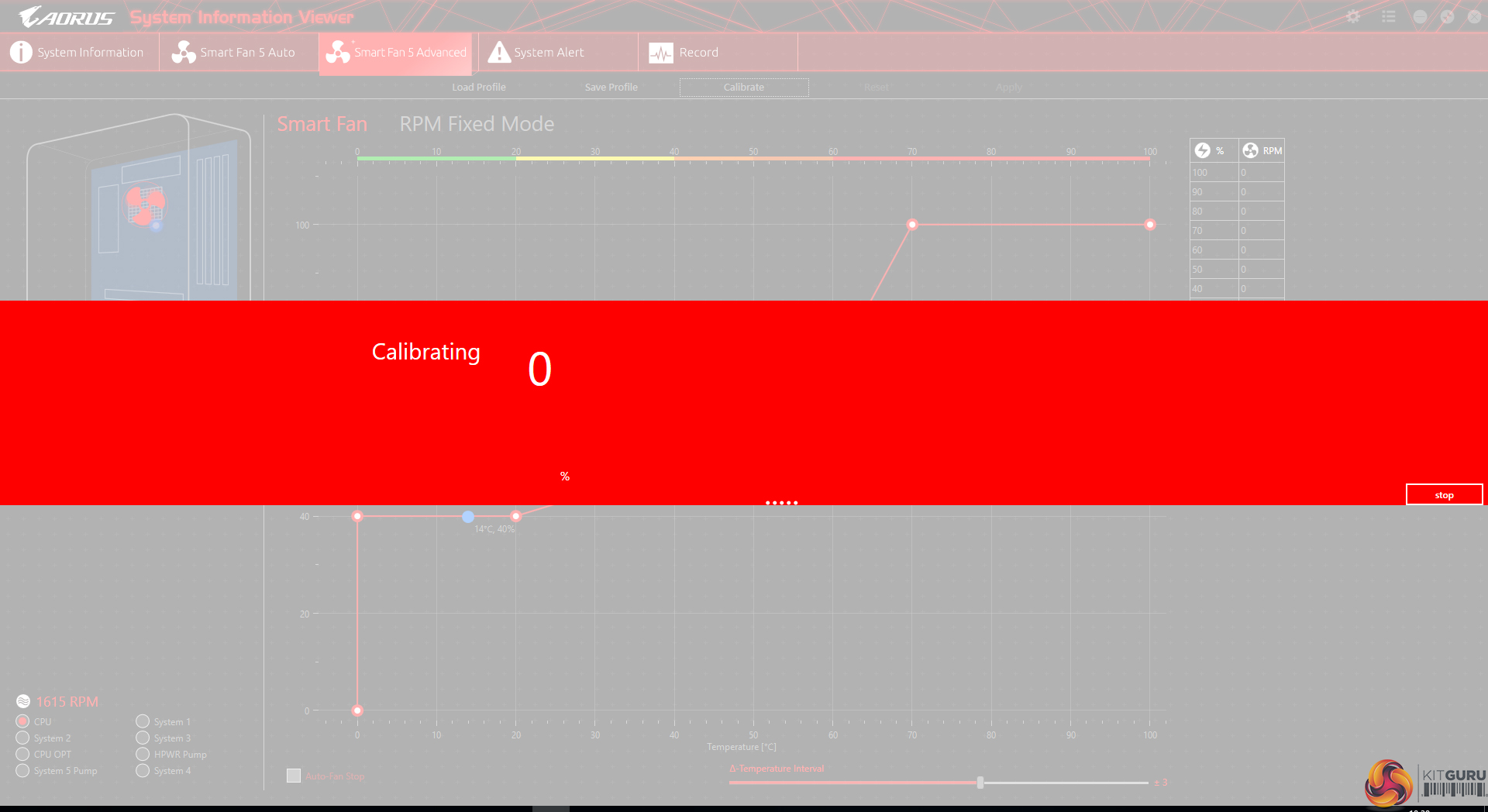 Gigabyte also provides a fan speed calibration option as well as the ability to see fan positions and temperature readings in a visual manner.