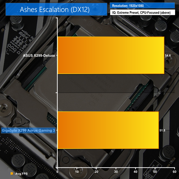 Gaming performance from the Gaming 3 is close to that of ASUS' X299-Deluxe, which is high praise.