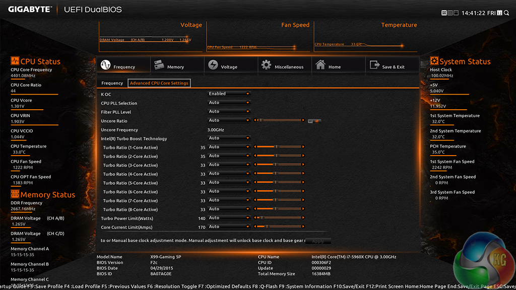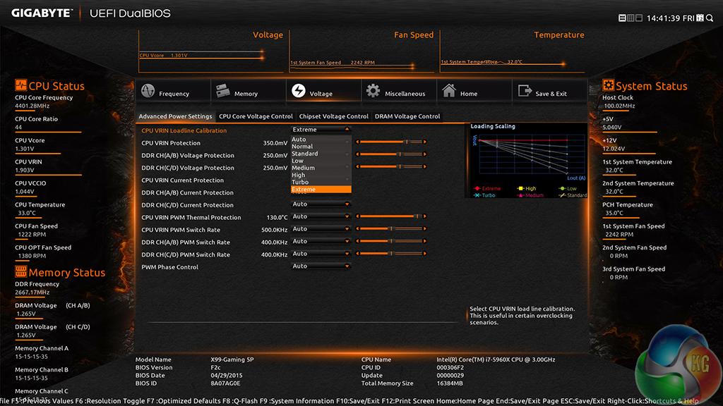 To test the Gigabyte X99-Gaming 5P motherboard’s CPU overclocking potential, we first increased the CPU VCore to 1.30V and CPU Input Voltage to 1.9V. We also enabled ‘K OC' and applied Extreme LLC (to feed a constant voltage).