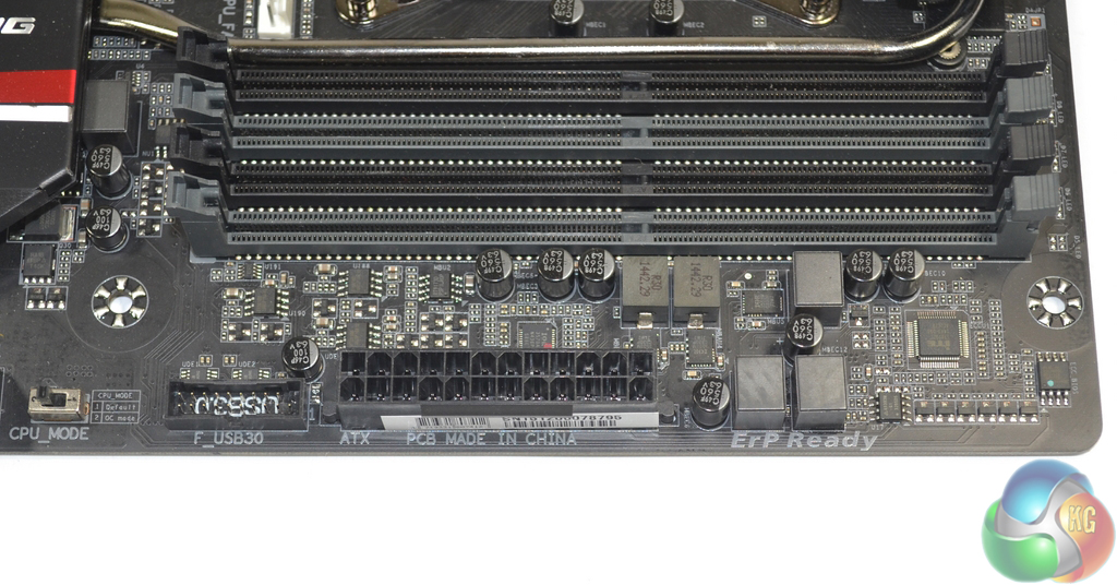A six-phase power delivery system feeds the LGA 2011-3 CPU. Gigabyte cools the MOSFETs by way of a sturdy metal heatsink that is connected via heatpipe to the sizable chipset heatsink.