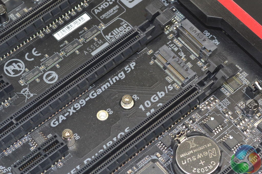 Gigabyte equips the X99-Gaming 5P with two M.2 connectors, although only one of them can be used for storage. The other M.2 port is intended for use with WiFi adapter cards.