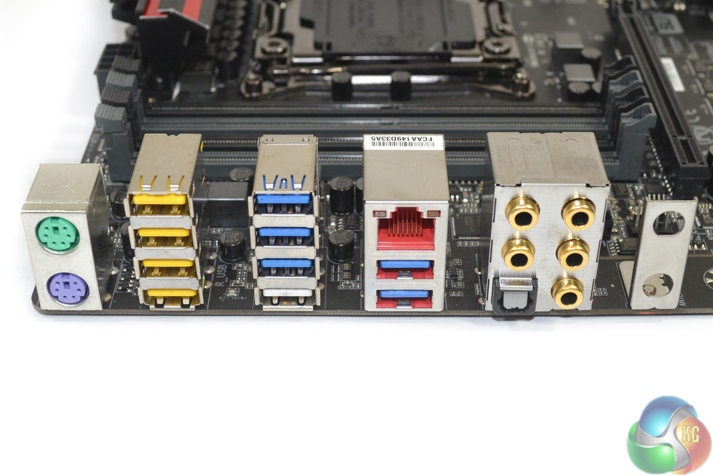 All ten SATA 6Gbps ports are provided by the X99 chipset. Two of the ports double up as the board’s 10Gbps SATA-Express connector.