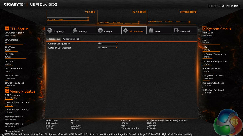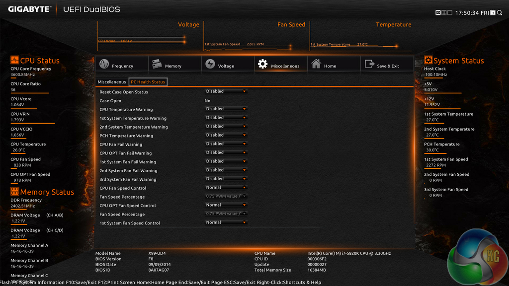 Fan and warning settings can be accessed via the PC Health Status column of the Miscellaneous section. Fan speed controls can be set to a user’s preference, albeit with a limited range of input.