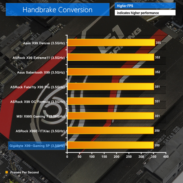 CPU-based results put Gigabyte's board towards the lower end of our charts. That said, there's very little difference between the highest and lowest performance due to the heavily integrated nature of Intel's Haswell-E CPUs.