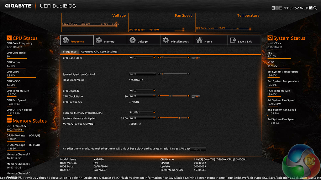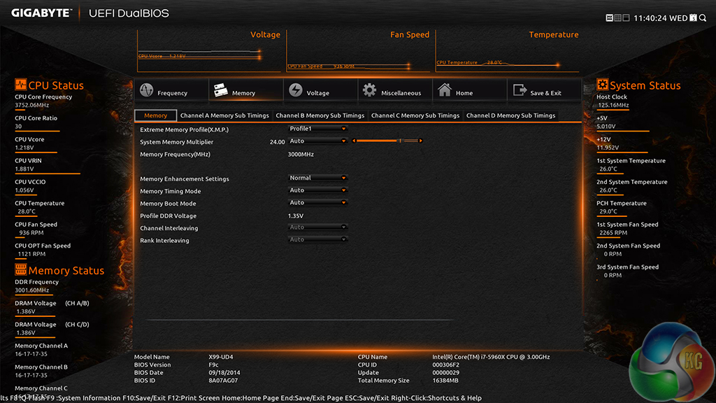 Gigabyte has been working hard to provide support for 3GHz memory kits on its motherboards. We managed to boot with a 3GHz memory clock using a 3000MHz kit of Corsair Dominator Platinum DDR4. Gigabyte told us that G.Skill's popular 3000MHz Ripjaws4 kit is still suffering stability issues.