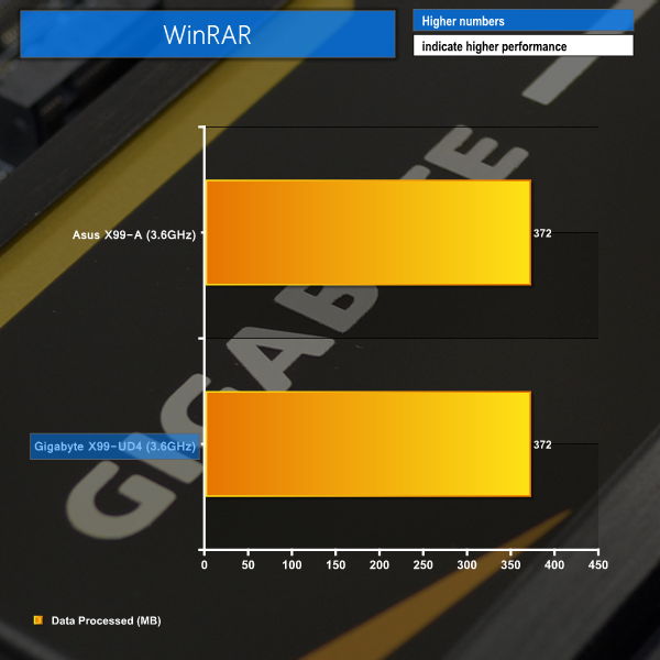 WinRAR puts both motherboards at equal performance levels.