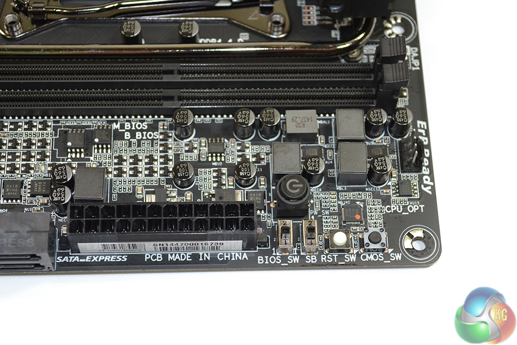 The four USB 3.0 ports are provided via a Renesas uPD720210 4-port hub. A further six USB 2.0 ports are present, the yellow four of which are ‘DAC-UP' ports that are fed a clean voltage signal for improved audio quality delivery. Two PS/2 ports may be welcomed by some users.