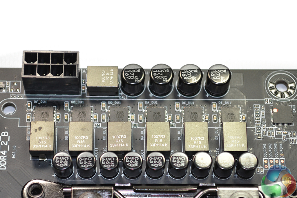 The DRAM and system voltage hardware sees the use of International Rectifiers' efficient IR3553M packages, as well as a pair of the same company's IR3570A controllers.