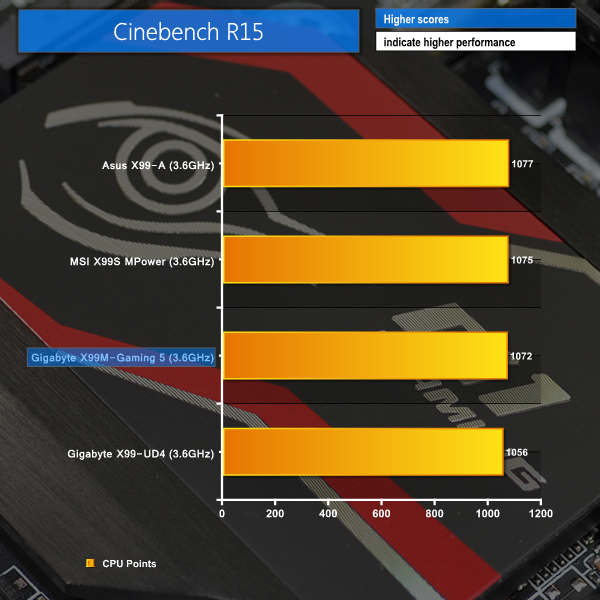 The CPU-heavy workloads continue to show that Gigabyte's mATX motherboard has no problem competing with the larger alternatives.