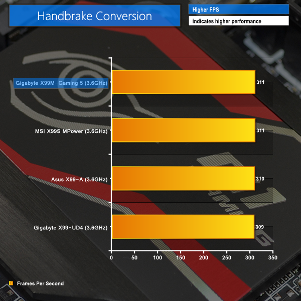 We measured the average frame rate achieved for a task of converting a 4.36GB 720P H.264 movie (in the MKV container) to one in the MP4 container.