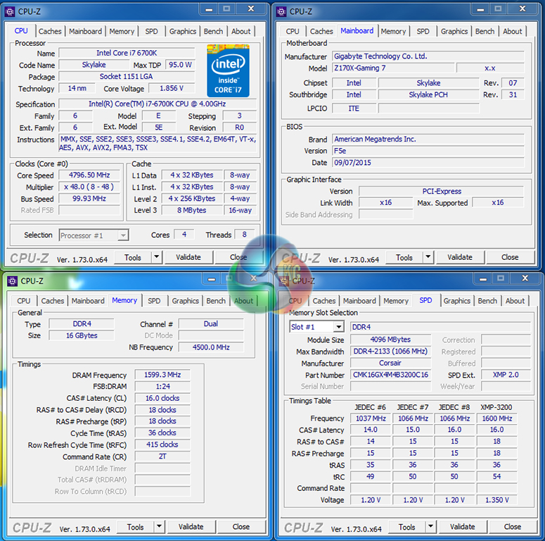 Gigabyte's Z170X-Gaming 7 motherboard had no problem pushing our i7-6700K chip to its stability limit of 4.8GHz when using 1.4V. Voltage accuracy using the High LLC setting could have been better – our multimeter recorded a VCore of around 1.385V whilst idling and around 1.37V when under heavy Prime95 load.