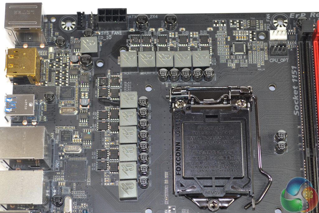 A total of twelve power delivery phases are responsible for feeding the LGA 1151 CPU and its associated iGPU, as well as general system voltages. Eleven of the MOSFET phases are cooled by a pair of solid metal heatsinks that are connected via a heatpipe.