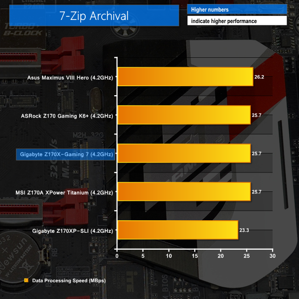 Performance in CPU-intensive operations is without concern. Gigabyte's board offers roughly the same level of performance as other functional Z170 boards when testing errors are discounted.