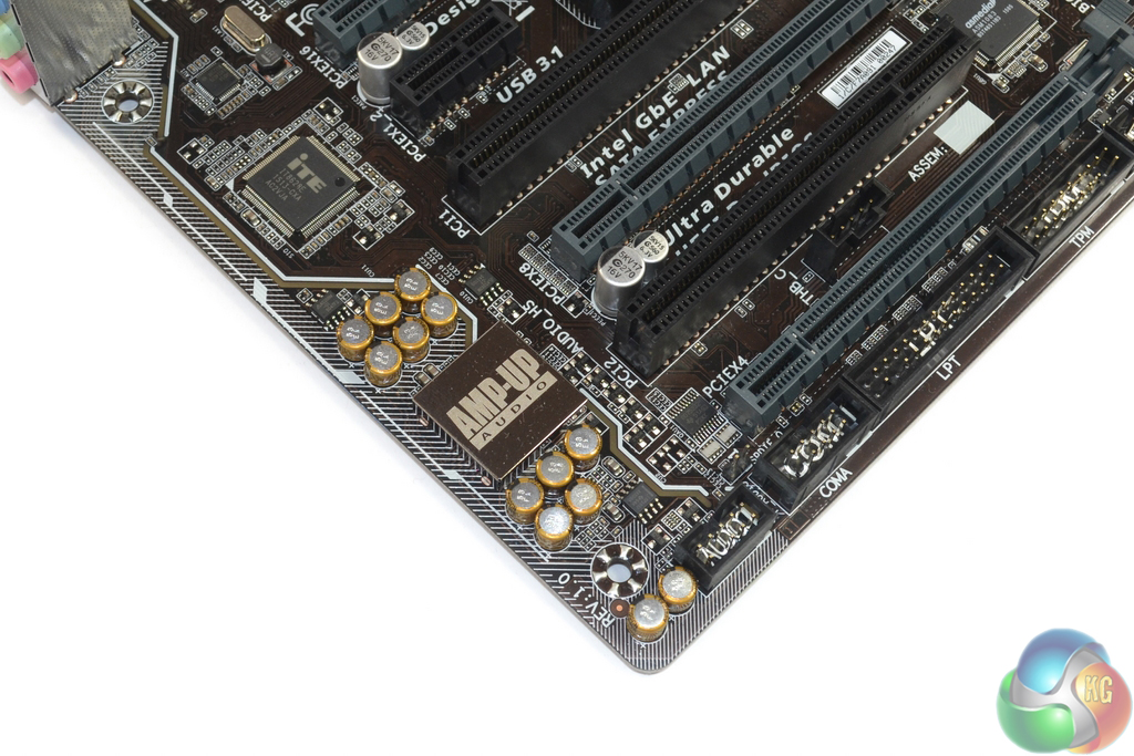 Three blue USB 3.0 ports are provided via the Z170 chipset. 10Gbps Type-A and Type-C USB 3.1 ports are provided by way of ASMedia's ASM1142 chipset. I do not spot the popular EtronTech EJ179V logic IC, implying that Gigabyte is not making use of enhanced power delivery capabilities of the USB Power Delivery specification (commonly associated with the Type-C connector).